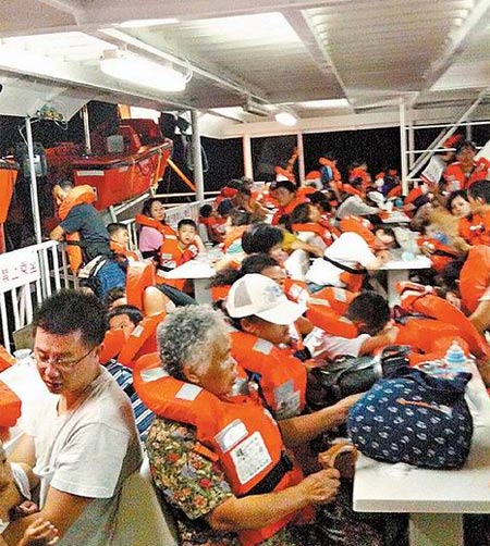 台北来的廖先生痛骂:“开船时前舱就没有冷气,海浪很大,这样还开船就不应该,故障原因也没讲清楚,船公司要给我们一个交代。”旅客吴晨瑜则说,小朋友一直哭,船舱内到处都被吐的臭气冲天,好多人不舒服晕倒。