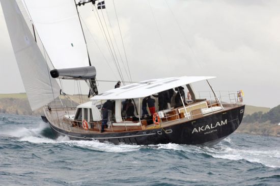 Akalam是一艘高科技帆船,设计与建造的标准非常高,每一个细节的刻画都一丝不苟,没有丝毫妥协。安装了大幅玻璃窗的驾驶室让她有着独一无二的轮廓造型,船舱的侧面大幅玻璃为乘客提供了完美的景色。 这艘船对于设计师来说是一个巨大的挑战,Barracuda Yacht Design公司的I?igo Toledo解释道:“完整无接缝的大面积玻璃窗是我们设计的重点,同时为了保证拉紧的风帆能够牢牢固定在双层加强结构的底座上,我们尽最大的努力使风帆和船身有完美的整合,特别注意减少风帆远端的张力。” 风帆带有自适应悬臂和滑动式后支索,操纵十分方便,可伸缩的中插板使她的吃水深度增加了3.6到5.5米,这样该船的航行距离便可以大大增加,同时也增加了下锚的稳定性。船上的公共区域和主客舱面积非常大,并且使后甲板的空间增大了60平方米,通过加宽的舱口围板,放置在后甲板的座位横向排列长度超出了整条主梁的宽度。