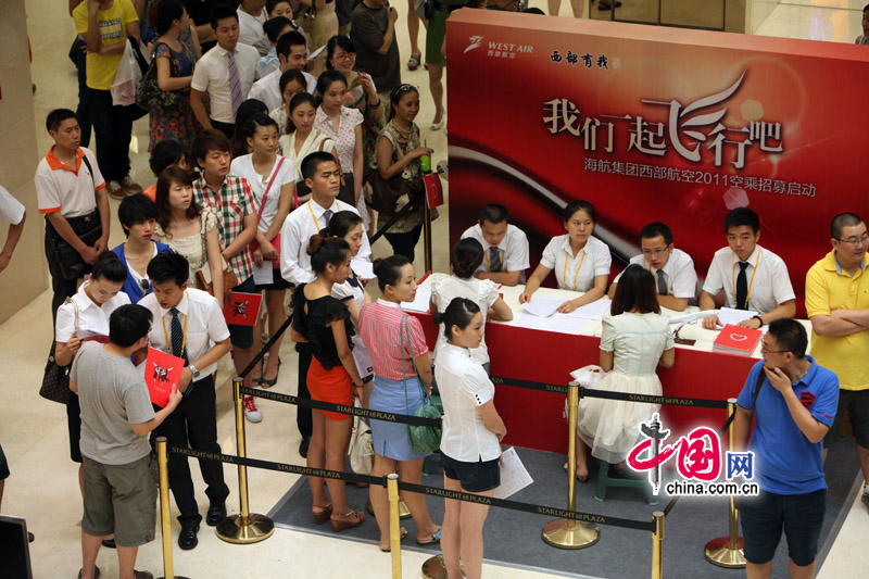 7月24日,海航集团西部航空2011空乘现场招聘在重庆江北步行街拉开帷幕,图为招聘现场。(中国网讯图片库 阿舍 图片报道)