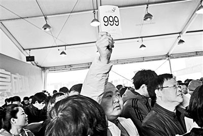 一些竞拍者放弃出价 昨日上午,中央和国家机关公车改革取消车辆的第二批首场拍卖开槌,截至昨日下午1时30分许,100辆参与竞拍的公车全部拍出,相对于总起拍价 360.2万元的价格,最终的成交价达到902.7万元,溢价率高达150.6%,创出公车拍卖以来的新高。竞拍现场,伴随着大户们豪放地举牌竞价引起现场阵阵欢呼和掌声的背后,还有不少原本打算低价捡漏的竞拍者咋舌“有钱任性”的无奈感叹。 拍卖现场 拍卖师刚上台 呼吁理性竞价 昨日上午10时30分许,拍卖现场的工作人员走上拍卖席,宣布开始竞拍后,围在竞拍现场周围的竞拍者便立即涌入竞拍场地。由于现场没有设置座椅,所有的竞拍者都是全程站着参与竞拍。当拍卖师走上竞拍席后,台下喧闹的众人便安静了下来。“我是拍卖师,大伙可能没看见,其实我身后还写着10个字:拍卖有风险,竞拍需谨慎。不过,还得加个括号,里面写的是有钱任性除外。”拍卖一开始,拍卖师的这句玩笑话就逗乐了众人,其实,在拍卖师的身后,什么字也没有写。 第一辆参与竞拍的车辆是一辆登记日期为2004年的1.8T自动挡的帕萨特,起拍价为2.8万元,经过几次举牌竞价后,最终以4万元的价格成交。这辆车在竞拍时价格显得比较合理,但不少竞拍者都表示还是观察一番后再出手参与。 可刚刚拍到第二辆车,便迎来了现场的一阵欢呼。这辆登记时间为2002年的白色奔驰2.6L的公车,起拍价为4万。结果不到2分钟的时间,经过十轮的举牌竞拍,价格一下就飙升到了8万。紧接着,随着每次竞拍者举牌竞价,现场便是一阵欢呼叫好。最终,这辆奔驰以9.8万元成交。 随着拍卖槌落下,站在记者身旁的一名男子就撇了撇嘴,咋舌感叹参与竞拍的人是急性子,“这才第二辆,就拍成这价钱了,算了,我还是看看得了。”男子无奈地对记者笑言,随后转身坐在了拍卖会旁的台阶上,此后任凭场上的竞拍如何激烈,他都始终没有再起身举牌参与。 热门红旗 经历29次举牌 29.8万成交 起拍价为15万元的红旗H7轿车登记日期为2013年,是此次竞拍的车辆中较为“年轻”的一款车。拍卖师刚刚喊出起拍价,就有10余名竞拍者齐刷刷地举起了竞价牌,引来了众人的欢呼,原本应该每次加价1000或2000元的价格,但竞拍者干脆直接喊出“我加一万”的话语。数位竞拍者一下一万的加价举牌,不到一分钟的时间,这辆红旗便被加到了24万元。 这一下,场上的气氛立即又被调动了起来,随着竞拍者每一次举牌,台下都发出赞叹或掌声,在经历了29次叫价后,这辆车最终以29.8万的价格成交。 当拍卖师宣布成交的一瞬间,数十名记者便一拥而上地涌向了878号竞拍者,现场工作人员不得不提醒记者们,拍卖仍在继续,不要影响了拍卖现场。在记者长枪短炮的围堵下,878号竞拍者十分爽快地接受了采访。 他告诉北青报记者,自己姓马,在河北沧州经营一家汽车配件公司,“新车也差不多是这个价格吧,不过这辆车行驶里程才2万公里,和新车也差不多嘛。”面对记者的询问,马先生笑着回答道。“那买新车不是比拍这辆车更划算点吗?”面对记者的询问,马先生仍然面带微笑地说:“这个没关系,买新车还麻烦呢。我主要是看重这辆车是国家的公车,在使用方面和一般的家用车也一样。” 面对是否感觉车买贵了的疑问,马先生轻松地回应“差不多嘛,多花几万也行!”此言一出,便引起了一旁众人的感叹,马先生接着说:“只要是自己想买的东西,也不在乎那几万元钱。”随后马先生说,他买这辆车打算自己用,“毕竟红旗是我国的自主品牌,和奔驰、宝马不一样,多花点钱也行,支持国产嘛。”马先生透露,他从事国产车配件的行业,对国产车有特殊的情结,所以才拍下了这辆红旗轿车。 17岁老林肯被28万拿下 称有收藏价值 在本轮竞拍中,唯一的一辆“90后”老爷车林肯登记时间为1998年,因为现在几乎已经绝版,具有一定的收藏价值,也是之前媒体报道的最受关注的公车之一。记者发现,这辆林肯的右前侧还保留着插旗帜用的插孔,是一辆外事用车。 这辆林肯的起拍价格为5万元,拍卖师刚宣布竞拍开始,便有一名竞拍者直接举牌高喊了一声“10万”,引来了众人的一片欢呼。可不到几秒钟的时间,另外一位竞拍者又喊出“15万”的竞拍价,在竞拍现场的人群眼睛都瞪得大大的,惊呼起来。 众人的惊呼声还未结束,忽然又有人喊出了“25万”的价格,但立即又被人加价,直到890号竞拍者加到了28万的价格后才顺利成交。当记者蜂拥而上的时候,男子立刻转身离开了竞拍现场,不过刚刚走出现场还是被众人围了起来。这位竞拍者姓罗,他称自己是一家展览公司的,在北京工作。他告诉记者,之所以选择拍下这辆林肯,就是看上了车的收藏价值。“其他也没什么价值了,当然我也喜欢这个品牌。”罗先生说。 但相对于之前的大户,罗先生在接受采访时显得十分谨慎,他只是透露这款车会放在他的工厂收藏。随后他连声向记者道谢,匆匆地离开了拍卖会现场。 车王 丰田陆巡拍出48.2万 比新车价还高 当拍卖接近中午的时候,一位穿着荧光绿羽绒服、身材较胖的999号竞拍者,让现场众人发出“有钱,任性”的感叹。他以48.2万元的价格从另外两名竞拍者手中抢到了首次出现在公车拍卖会上的越野车——2004年登记、4.7升排量的丰田陆地巡洋舰。 这辆丰田车竞价开始没多久,就有三名竞拍者频繁举牌“抢购”,场上众多的媒体记者和其他竞拍者都闪开站