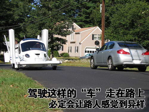 堵车可不是一件令人顺心的事儿,尤其是碰上有急事儿的时候,很多驾驶者都会这样说:“真是恨不得能够让这台车飞起来”。也许在过去这样说还是一个笑话,但是自从Terrafugia研发的“飞车”成功起飞和降落之后,驾驶车子在天上飞就不再是梦想了。 ![]() 它的外形更像是一台车子,而尺寸上也是和一般的家用轿车大小相近。但是通过两侧可以折叠的机翼,这台轿车用30秒的时间就可以变成飞机。