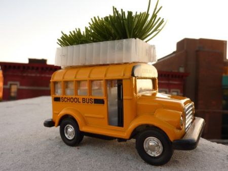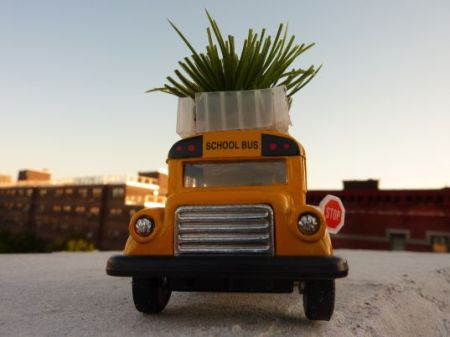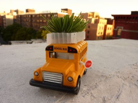 作为城市的主要的交通工具,公交车每天向空气中排放着大量的污染气体。来自美国的环境保护组织和环保人士发起了一项名为“绿化公交”的运动,他们在一些城市的公交车顶部种植了一种缓慢生长的肉质植物和小花,以此来吸收废气,绿化环境。如果整座城市的几千辆公交车都参与到这项活动中,或许城市的热岛效应将会有所缓解。