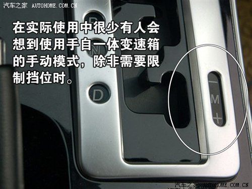 可是开过带有手自一体变速车型的人可能多少会有这样的感觉,在多数时间里没有使用到这项功能,基本上都是“一D到底”(一直用D挡行驶)。只有在频繁的起步停车或者下坡时作为限制挡位所用,而这个功能普通的自动变速箱也可以做到。此项功能是对于不同的驾驶者设计的,不过真正能经常用的这个功能的人毕竟是少数。