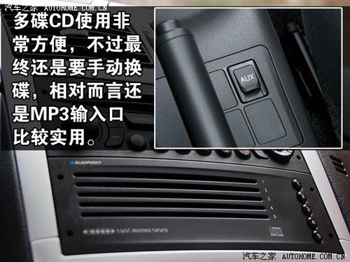 另外,现在市场上所销售的家用车里很多都配备了AUX音频插口或者USB插口,可以利用汽车音响把MP3、MP4等音源里的文件播放出来。如果您不是音乐发烧友,不需要刻意讲究音质的话,这是个不错的选择,既省去了买CD盘、刻CD盘的成本,又可以随时更新自己喜欢的歌曲,何乐而不为?