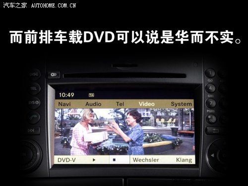 相对而言,前排的车载DVD系统就有一点华而不实了。一般情况下,前排车载DVD系统安装在中控台上,可以通过触摸屏来选择自己想观看的影片,但是为了防止驾驶者在行车过程中观看DVD,多数车用都将DVD系统设置成行车时自动关闭,所以在行车过程中驾驶员和副驾驶员都是不能收看到DVD节目的。但是这个功能可以用于等人时所使用,不过等人的时候一般也是在观察所等的对象,很少有人会在车内把一部电影看完,可以说对于一辆汽车来说,前排车载DVD系统是一项比较多余的配置