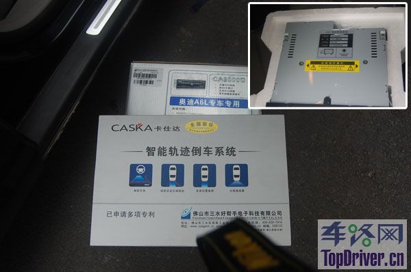 1、原车的整体效果! 2、主要配件展示 3、卡仕达智能倒车轨迹系统,配A6L专车专用摄像头 4、智能倒车轨迹系统,以及A6L专用的摄像头 5、升级加装的导航功能。一机双图 6、安装完成后的整体效果图 |