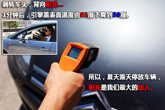 ![]() 解决方案出来了 ![]() 阳光暴晒也不怕 ![]() 遮阳板的效果测试 ![]() 效果真明显 ![]() 空气流动也重要 这几招看似简单的小贴士,绝对可以帮助你和你的爱车更轻松的度过难熬的苦夏。 |