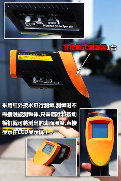 ![]() 烈日下的测试场地 贴膜等等,都是些费钱的办法,闯过达喀尔的门老师,对于防晒自然有自己独到的心得。 ![]() 我们的测试器材