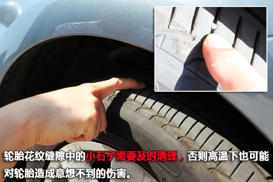 ![]() 轮胎胎壁要检查 ![]() 清理轮胎花纹中的小石子