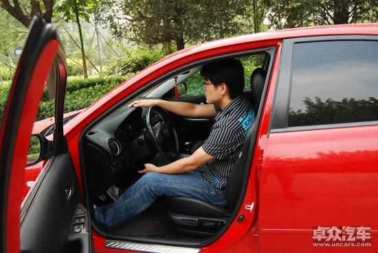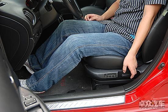 根据自己的身材,保证在右脚把刹车踏板、离合器踏板和油门踩到底的时候,大腿与小腿之间自然弯曲,此时的座椅前后位置是合适的。 第二步:调整座椅角度和高度