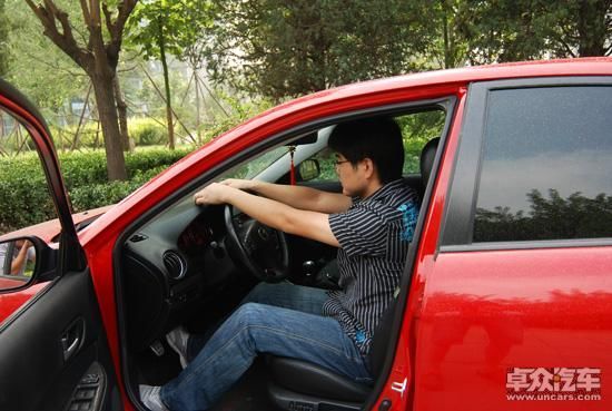 比较理想的座椅角度是靠背与垂直方向夹角为8度,但不可能用量角器精确测量,只是一个大致的范围,不过最忌讳的是像坐藤椅那样仰着开车,这样是很危险的。而座椅的高度要以保证大腿能够充分发力为原则的前提下,尽量使自己舒服的位置,不能太上扬。 第三步:手臂与方向盘之间距离调整