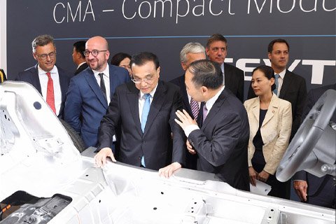 李克强总理坐在车内,另一侧坐着比利时首相米歇尔。而探身进车为这一“豪华乘客阵容”讲解的,是吉利集团总裁李书福。 这一场景,发生在比利时布鲁塞尔当地时间6月2日傍晚。在访欧行程即将结束之际,李克强总理专门抽出时间,在比利时首相米歇尔陪同下参观吉利-沃尔沃汽车创新成果展。 吉利汽车于2010年正式完成对沃尔沃轿车公司的全部股权收购。位于比利时的沃尔沃根特汽车工厂,在收购后实现了产量和出口销量稳步增长。 这正是中比两国总理共同出席这场活动的原因。李克强和米歇尔参观了吉利与沃尔沃共同研发的汽车底盘,以及基于该底盘生产的新款轿车,还了解了企业在自动驾驶等领域的创新探索。 “我们鼓励中国企业在开放与合作中提高技术水平,锤炼工匠精神,升级中国制造。”李克强说。 希望你们进一步更新理念,推出更多适应消费者个性化需求的新产品