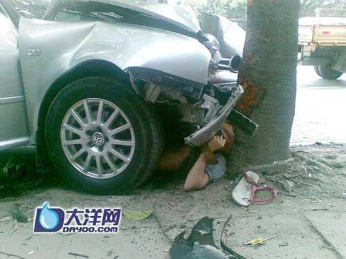 昨日15时许,记者赶到现场看时,肇事小车和被撞死的少女已被运离现场,只留下一个被撞飞的警示牌和垃圾桶。白云农批市场公交车站牌后的一棵大树被撞掉一圈树皮,地上仍有大摊血迹。