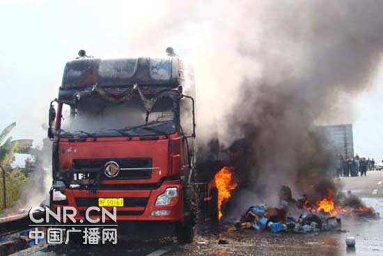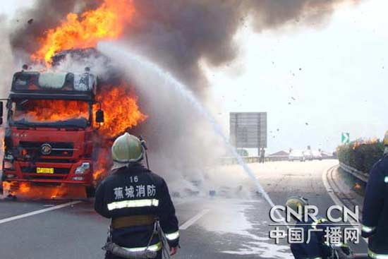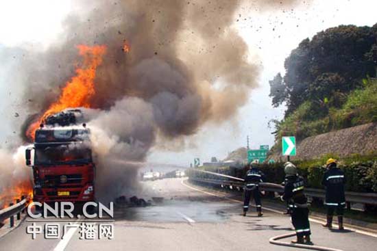 福建:沈海高速宁德路段一货车突发大火