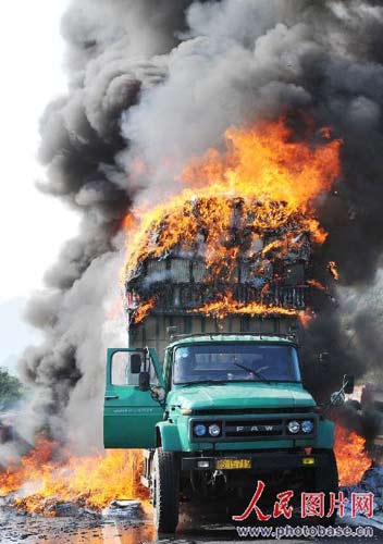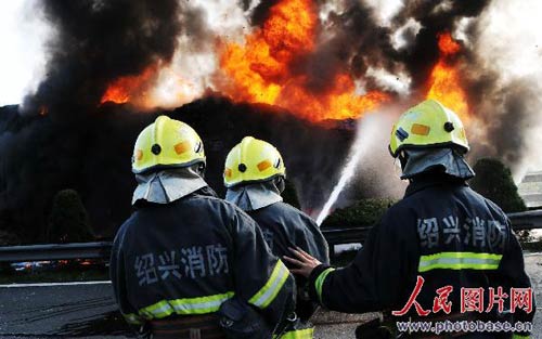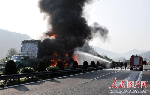 浙江一高速公路货车突然起火 连续数次爆炸(图)