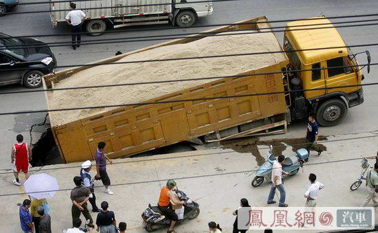 司机:感觉一下飞了起来 昨日上午11时许,戴师傅驾着车牌号为“鄂AK8167”的橘黄色翻斗车,从武昌江边的沙场拖出一天里的第一批黄沙,前往南湖边的一个工地。翻斗车驶在白沙洲大道上,在武泰闸武商量贩店附近,戴师傅听到车后传来“轰”的一声巨响,车头猛地往上一抬。他的眼前只剩下天空,“感觉一下飞了起来”。戴师傅惊魂未定,摸了摸胳膊,没受伤。他打开车门,跳出了驾驶室。 路面裂开一个大坑,吞下了翻斗车的中后部(见图),所幸驾驶室还在坑外。翻斗车的油箱破了,传动轴也断了,“损失不小”,戴师傅赶紧报警,还叫来了保险公司。交警和消防官兵随后赶来,面对庞然大物,无计可施。 现场:路面下几被掏空 裂开的大坑有20平方米左右,最深处近2米,让过路群众吃惊的是,路面下的路基几乎被掏空,只剩约20厘米厚的水泥路面支撑着。记者看到,白沙洲大道上,不少满载黄沙、渣土的翻斗车来来往往,不少司机目击事故后,对该路段的通行安全表示担忧。 戴师傅驾驶的翻斗车额定载货量为11.8吨,但戴师傅坦言自己超载了,但他认为,事故的主要原因是因为路基被掏空,使得路面被架空所致。 现场取证的保险公司工作人员表示,他们估算车子加货总共近40吨,白沙洲大道未禁止大货车通行,要根据交管等部门对事故定责后决定是否赔偿及赔偿多少。 专家:路面塌陷事出有因 市民商先生自小在武泰闸长大,他告诉记者,事发地附近曾是一个三角形的水塘,水塘边的堤岸到湖水落差有近10米,上世纪70年代末,水塘被填埋,修成了道路。 昨日下午,在现场的武昌区城管局市政设施管理科张科长说,事发后,司机找来货车,在将一车黄沙转运后,下午5时大吊车才将翻斗车吊出大坑。随后,城管部门将事发大坑周围用挡板围住。目前,路面塌陷的具体原因不明。 武汉理工大学交通学院道路与桥梁工程教授杨吉新分析,路面塌陷一般有两种原因:如果路面地基泥土轧得不密实,一段时间后,泥土就会沉降,导致路面塌陷;如果地基下有水管长期漏水,污水长年冲刷泥土,就会掏空地基,进而导致塌陷。 相关部门对事故原因正在调查。 |