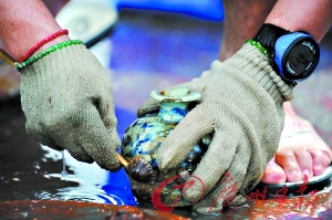 之前,有关方面曾预测“南澳Ⅰ号”文物将达上万件。孙键则表示,具体数量至少要等到船体大致现出真身后才好预测,但现在能观测到的情况是,“南澳Ⅰ号”古船所载货量是很大的,并且从花纹和胎质鉴别,其中的景德镇出品瓷器应该比漳州瓷器少一点。