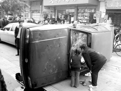 男子驾奔驰追数百米撞击桑塔纳 招来众人掀翻车