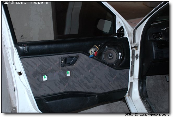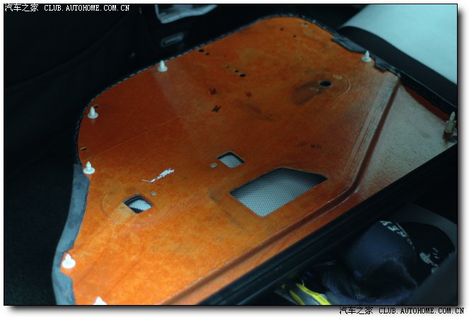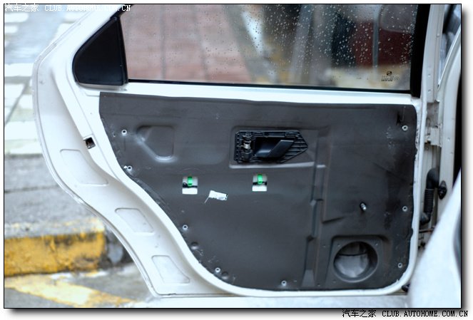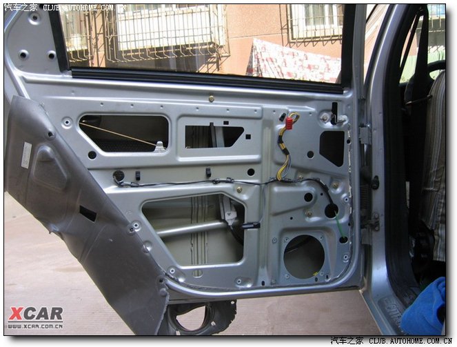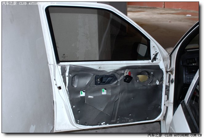 因为有了昨天下后门的经验,今天再下前门是轻车熟路了。不过从后门下还是对的,毕竟简单些,下前门要多几个步骤,就是要下喇叭,还有扶手多了一个隐蔽的锣丝,不说的话,一般人估计找不到。当然还要下后视镜的里面三角。