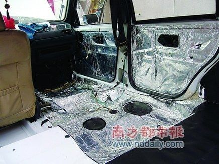 招数1:车门、门边、轮弧上方部位、翼子板及底盘贴上隔音材料
