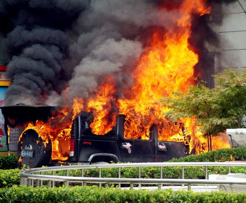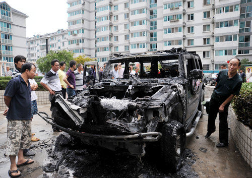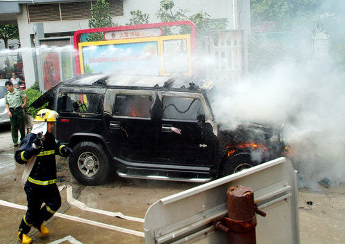 南京悍马婚车发生自燃 百万名车烧成空壳