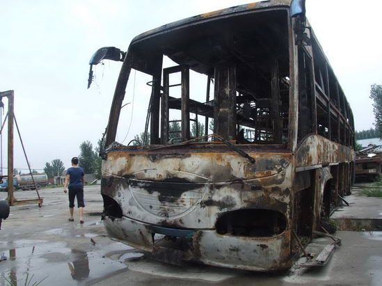 ![]() 被烧成骨架的客车