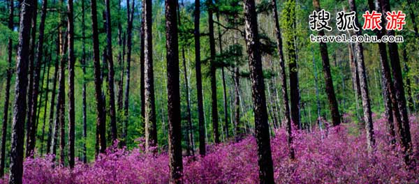 杜鹃花俗称“映山红”,每年5月中旬是最佳观赏时节。地处北纬50度的呼伦贝尔,春天来得迟,但因杜鹃花满山遍野地开放,却来得异常猛烈。在白桦林间、火山岩上,艳丽的杜鹃花映衬着白桦树洁白的树干和火山岩嶙峋的质感,划出一道道明亮的色彩,叫人看一眼,心情立马就变得明媚起来。